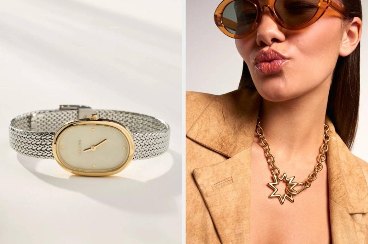6. A tethered metal watch so you’re *always* on time, being the CEO of your own life that you are. This beautiful timepiece adds a polished, put-together touch to any OOTD while keeping you right on schedule. Function and form? Yes, please.