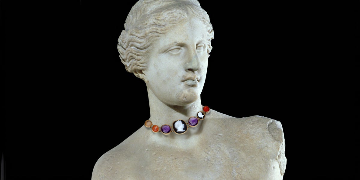 Another draw to the ancient? Monnier’s pieces range from €3,000 to €5,000—a bargain compared to the new fine jewelry iterations that are based on these ancient designs. “It’s been an uninterrupted chain of inspiration,” from ancient to contemporary jewelry, says Corsi.