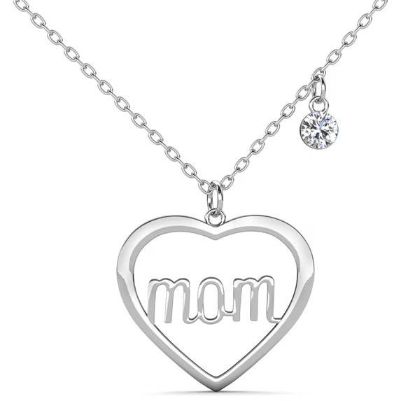The Melody necklace is crafted in an 18k white gold plated heart shape with “MOM” engraved at its center and set with simulated diamond crystals. The piece is designed for everyday wear, making it a gift a mother is likely to reach for well beyond the holiday. It is available on Walmart.com at Melody 18k White Gold Plated Mom Heart Necklace.
