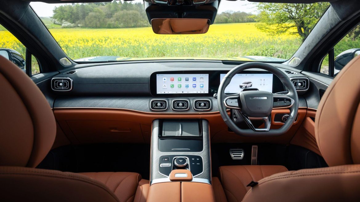 The interior of the Jaecoo 8 looks like a big upgrade over the brand’s smaller models. Indeed, the only thing shared with the Jaecoo 7 is the steering wheel, with a completely different dashboard look and more imposing, cocooning centre console.