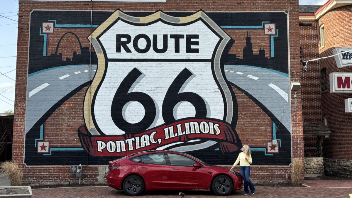 There are now regular charging points, making it possible to drive the whole thing in an EV. I’m testing part of it on a five-day trip across the 280-mile stretch in Illinois.