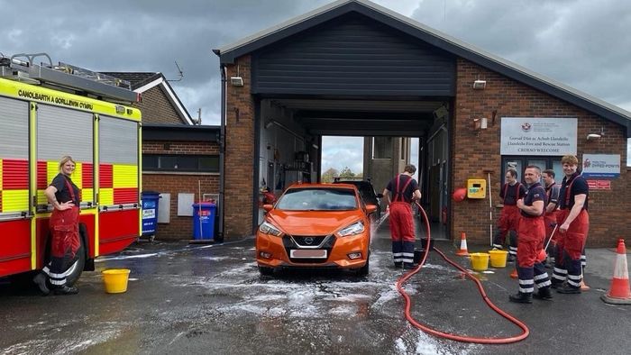 The team at Llandeilo Fire Station are celebrating after a very successful day spent meeting local people and cleaning cars.
