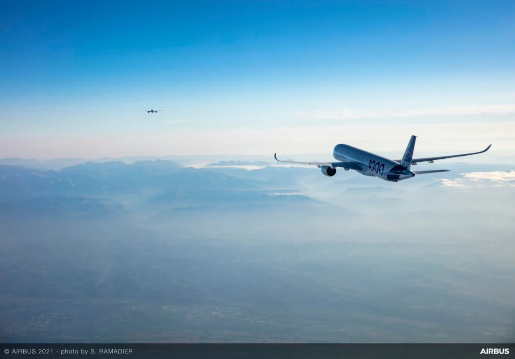 Airbus applies similar aerodynamic principles by positioning a following aircraft to capture uplift generated by the leading jet’s wake.