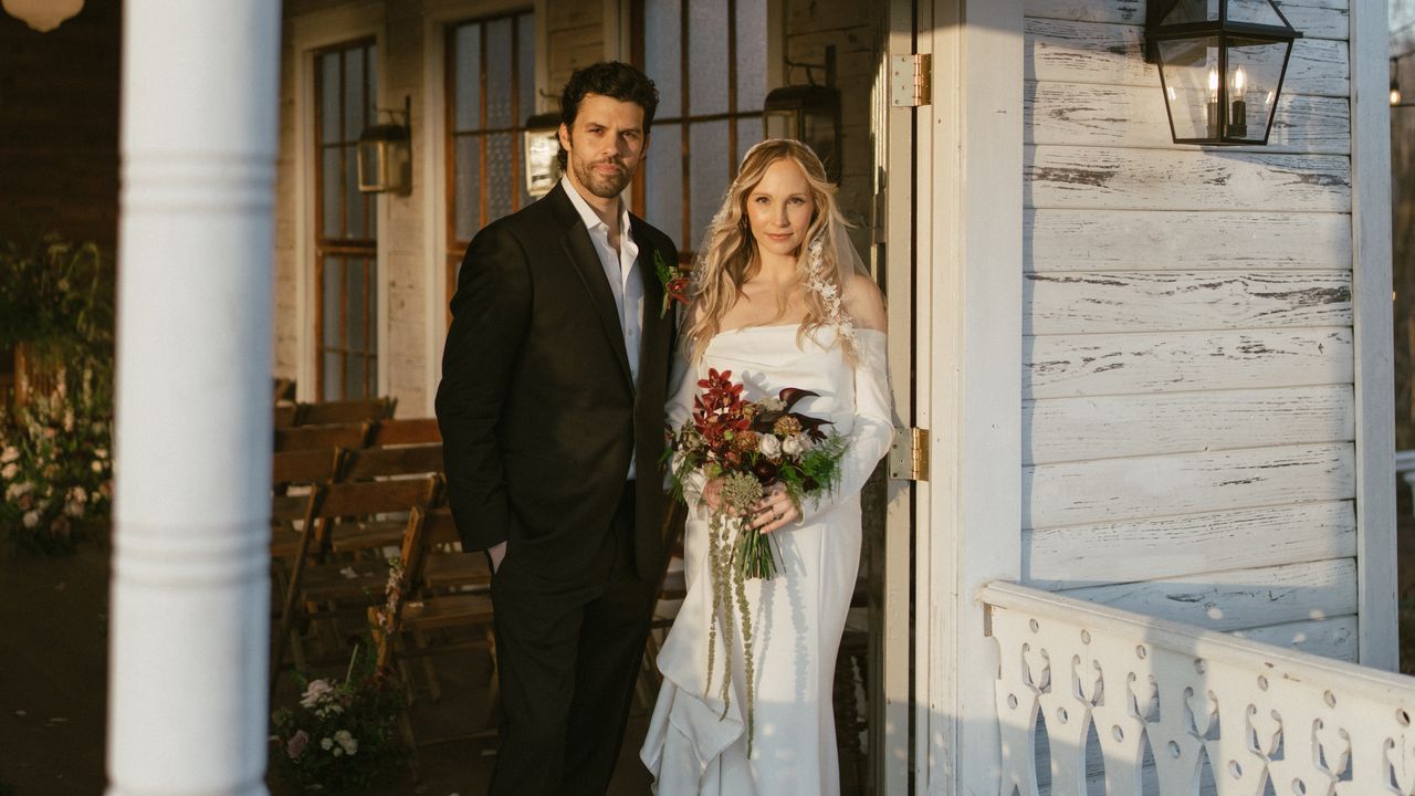 On an unseasonably sunny and warm February morning, the couple got ready at their Nashville home with Candice’s two daughters. “What I’ll always remember is how beautiful that day was,” says the bride. The family planned to take a vintage limo to the chapel, but it broke down before arriving to their home. “Well, I damn sure wasn’t going to be late to my own wedding, so the four of us just piled into my car, donned in tuxes and white dresses, and drove ourselves there,” says Steven. “Made it right on time, and that turned out to be our only hiccup of the day.”