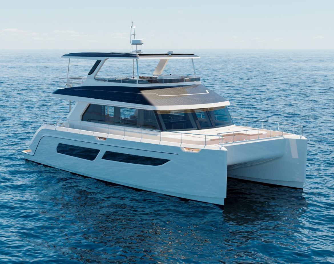 ILIAD Catamarans has unveiled imagery of the first ILIAD 53F OffGrid Hybrid, featuring a striking bespoke interior design by BAZ Yacht Design.