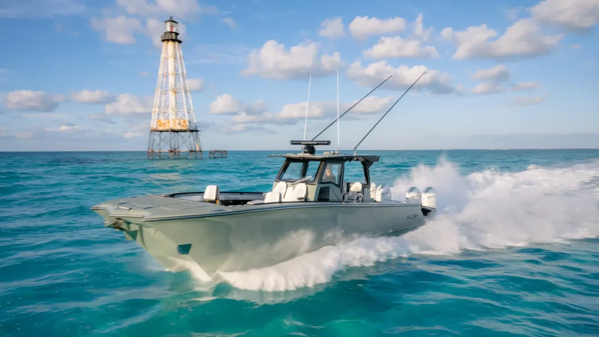 Fishing functionality is everywhere, though the 370 is far from a one-trick pony. Massive 640-quart fish boxes, 38-gallon livewells, abundant rod storage, and easy-access systems are balanced by refined comforts: a proper head with Corian countertop, modular seating for up to 12, a retractable mezzanine seat with built-in cooler, and a walk-through transom that keeps movement aft simple and safe. With a 12-foot beam and 522 gallons of fuel, the Kush 370 is as capable of Bahamas runs as it is entertaining a crowd. It’s all proof that elegance and performance can, indeed, coexist. kushcatamarans.com