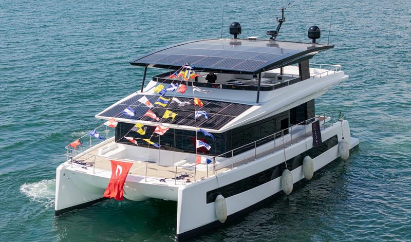 Following its successful launch, the catamaran is currently undergoing final commissioning and on-water testing, with delivery to her owner expected in the near future.